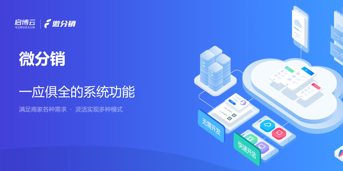有啟博云你就可以放心大膽的做你想做的,它支持120+個(gè)業(yè)務(wù)場(chǎng)景的解決方案,可以深耕細(xì)分領(lǐng)域,讓你的產(chǎn)品在適合的領(lǐng)域發(fā)展,多模式的進(jìn)行營(yíng)銷。它可以快速搭建一個(gè)在線分銷系統(tǒng),通過(guò)多模式和多方位實(shí)現(xiàn)分銷裂變銷貨,有效的幫助傳統(tǒng)微商盤(pán)活市場(chǎng),通過(guò)線上微信小程序進(jìn)行銷售。