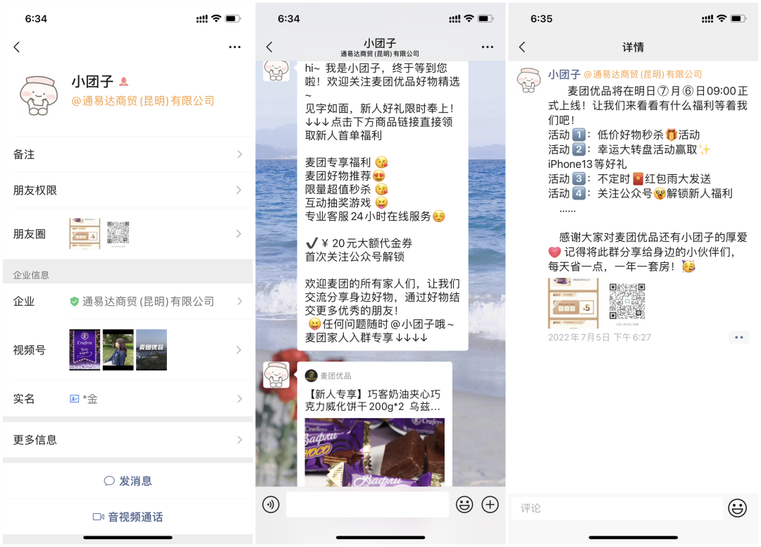 麥團優(yōu)品基于微信域內(nèi)全鏈路打通,把私域運營聚焦到“視頻號+企業(yè)微信+小程序+社群”的組合上。