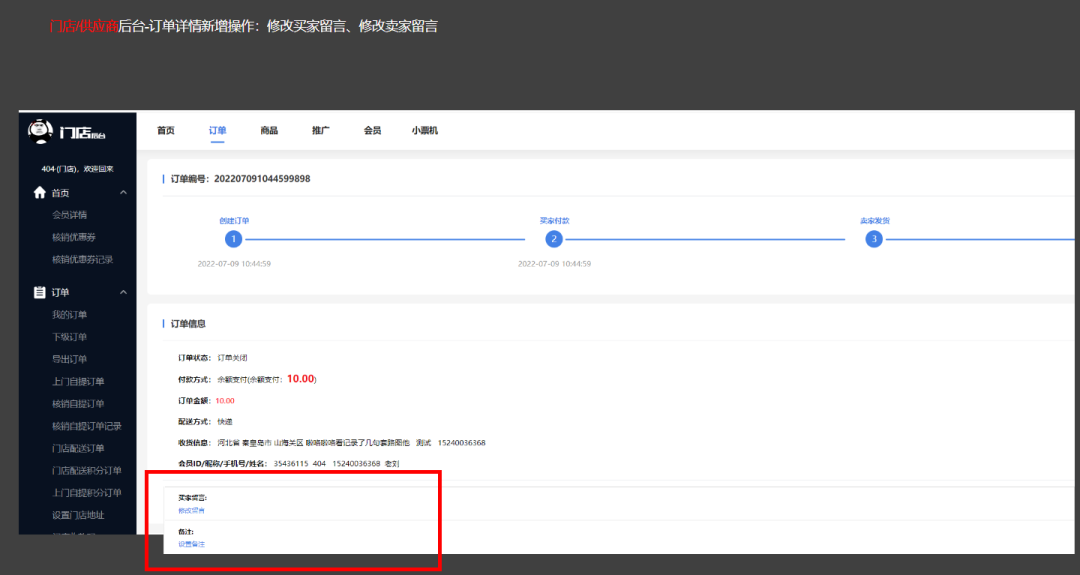 5、門店/供應商修改買家留言、賣家留言【優化】;