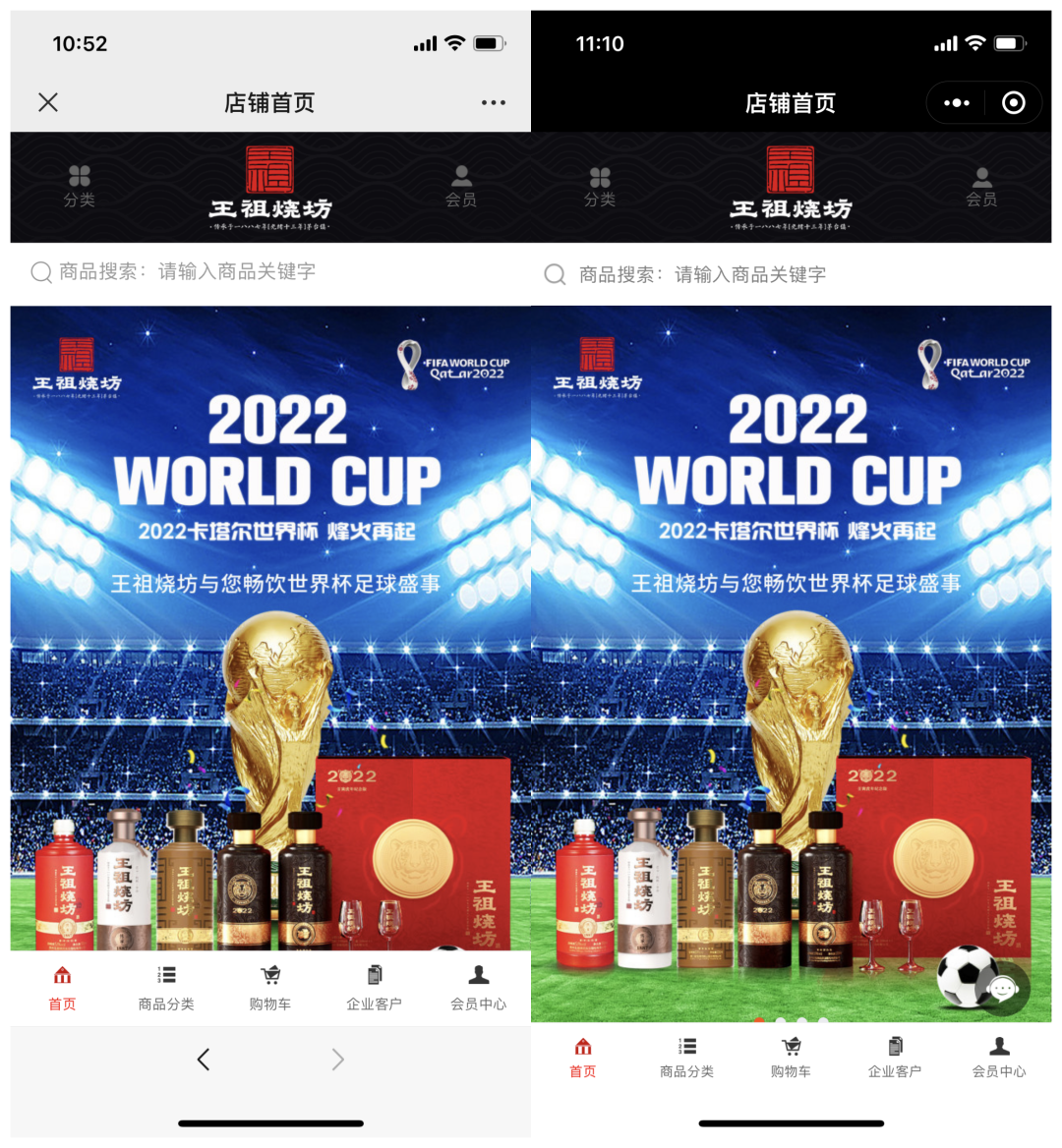 王祖燒坊通過線上商城實現與新消費人群和場景的打通,在商品分類中,品牌通過設置商務用酒、經典系列、虎年紀念款、企業定制酒、員工禮包、提貨卡專區分類,貼心地幫助用戶快速選擇適合的酒品,持續挖掘用戶消費意愿。