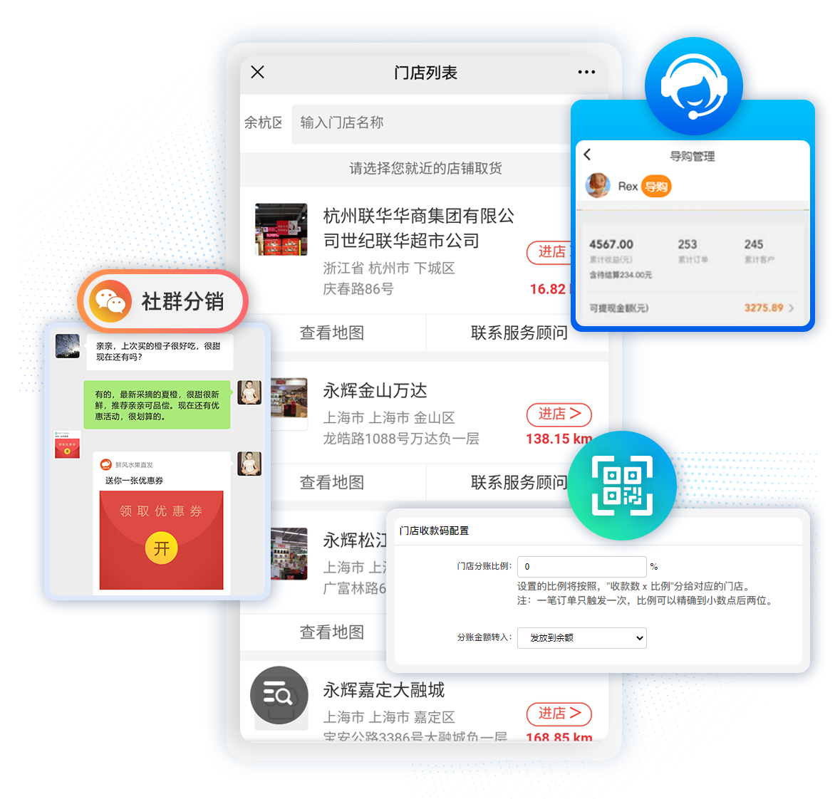 門(mén)店新零售千店千面,利用線上商城+社交分銷(xiāo),賦能線下門(mén)店,幫助門(mén)店線下線