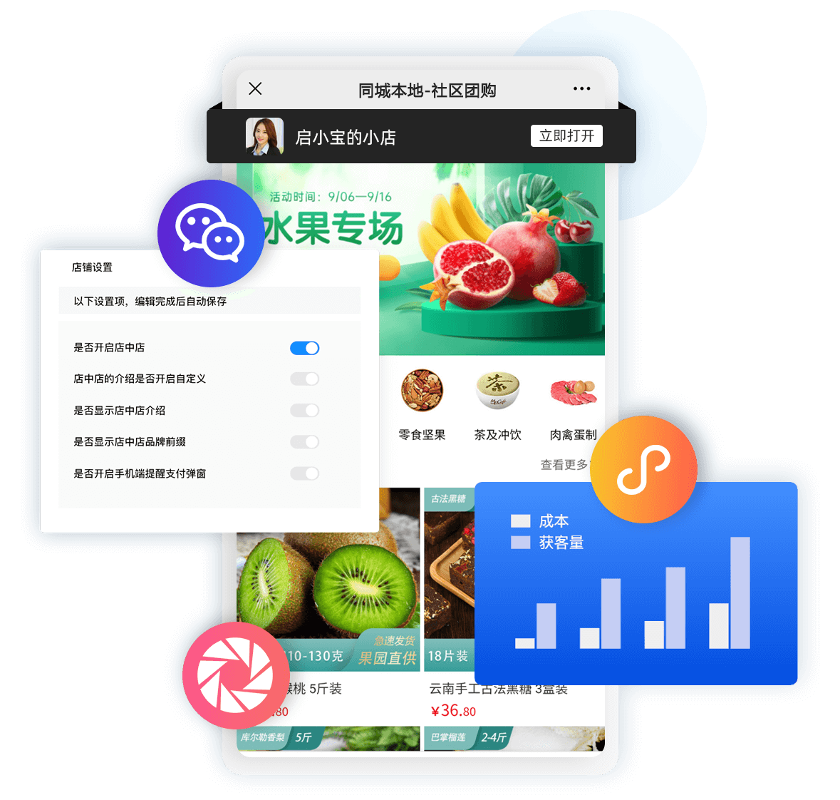 店中店,快速全渠道裂變公眾號(hào)+小程序+微商城+朋友圈,快速分享裂變,以一店裂變?nèi)f店,