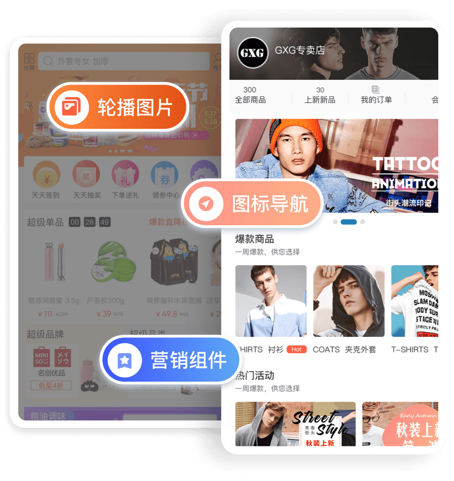 拼團、砍價、秒殺、群接龍等百種營銷插件,免費使用,提升銷量
